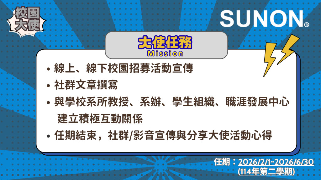 我們正在尋找充滿熱情、點子無限的你,一起成為 2026 年度校園大使,這不僅是一份打工,更是讓你盡情發揮創意、