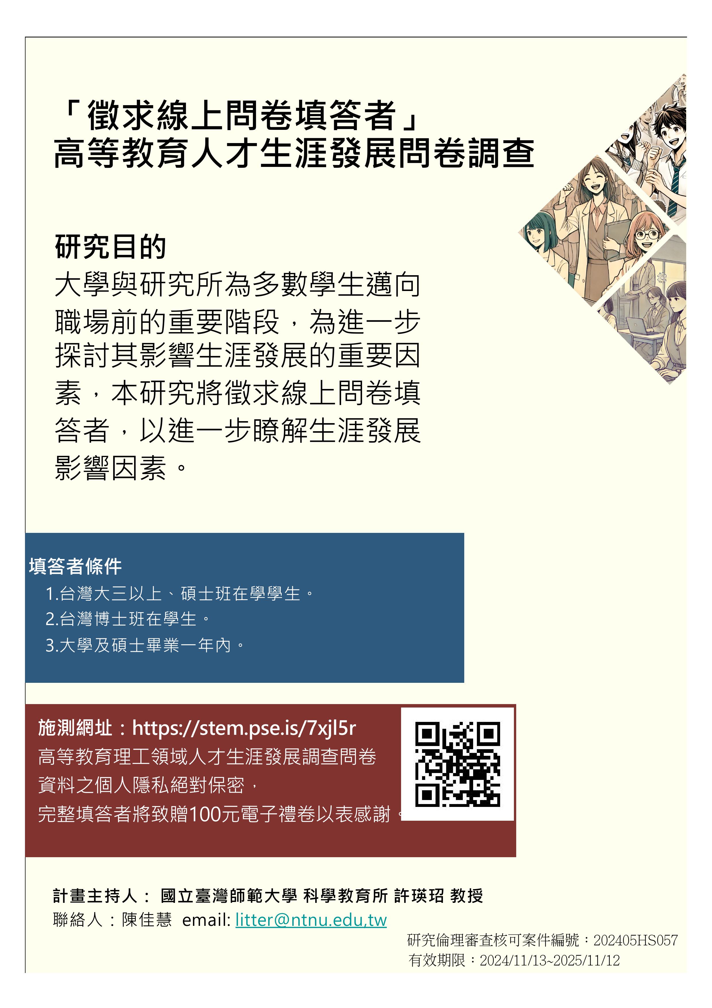 國科會計畫「STEM相關領域人才生涯發展影響因素長期追蹤調查:性別差異研究」之問卷填答邀請